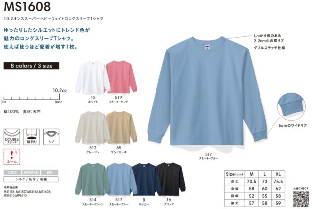MS1608 10.2オンススーパーヘビーウェイトロングスリーブTシャツ