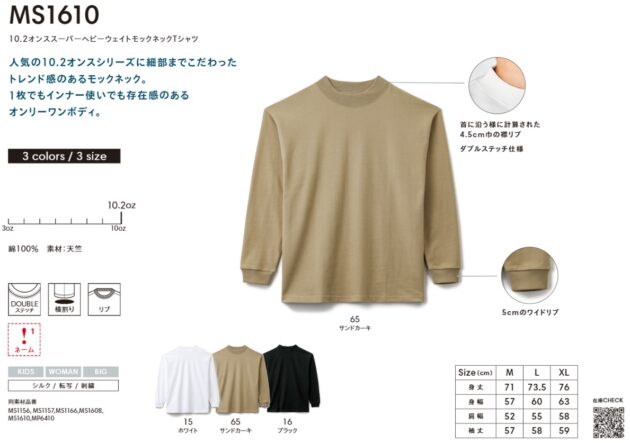 MS1610 10.2オンススーパーヘビーウェイトモックネックTシャツ