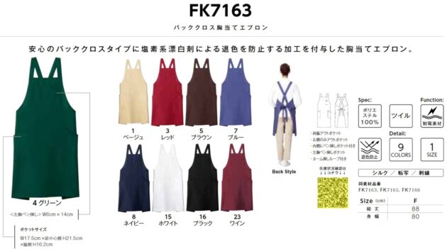 FK7163 FACE MIX バッククロス胸当てエプロン