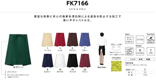 FACE MIX フェイスミックス ミドルエプロン 豊富な色数に安心の塩素系漂白剤による褪色を防止する加工を付与した ミドル丈エプロン ※こちらの商品は店頭で取扱いがなく、メーカーお取り寄せ商品になります。 通常確定後7〜10営業日での入荷。 少数やお急ぎでのご注文の場合メーカーお取り寄せ送料がかか…