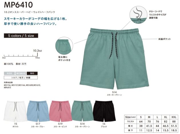 MP6410 10.2オンススーパーヘビーウェイトハーフパンツ