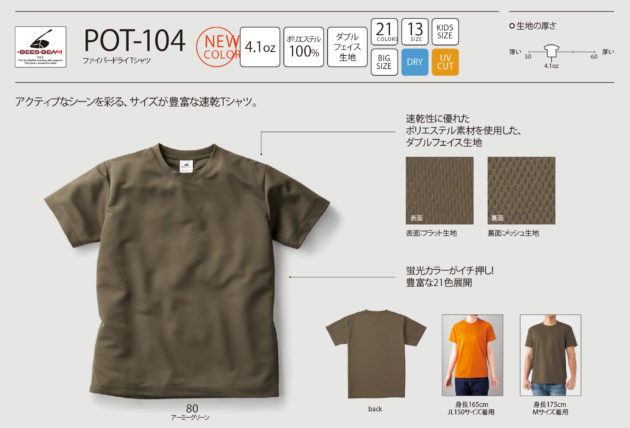アクティブなシーンを彩る、サイズが豊富な速乾Tシャツ。 速乾性に優れたポリエステル素材を使用した、ダブルフェイス生地 蛍光カラーがイチ押し!豊富な21色展開 ◎素材の特性上、熱をかけると縮む場合がございます。お取り扱いにはご注意ください。
