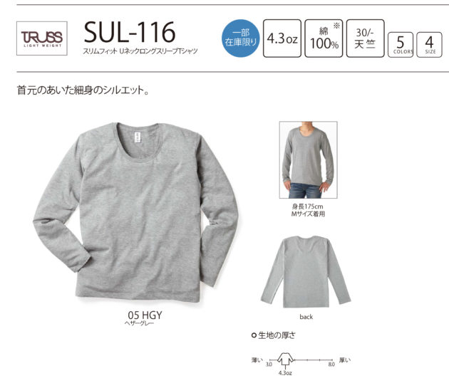 SUL-116 スリムフィット UネックロングスリーブTシャツ(在庫限り)