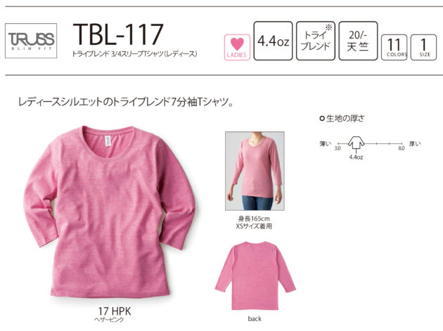 TBL-117 トライブレンド 3/4スリーブTシャツ(レディース)(在庫限り)