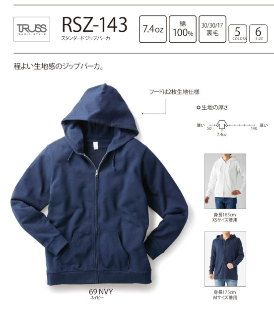 程よい生地感のジップパーカ。 パイル裏毛仕様 フードは2枚生地仕様。