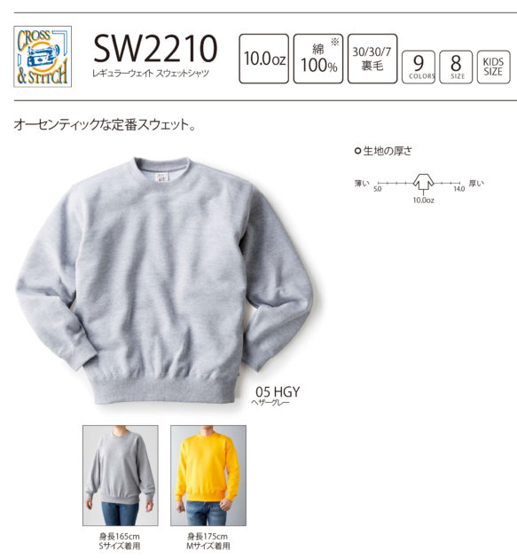 SW2210 レギュラーウェイト スウェットシャツ