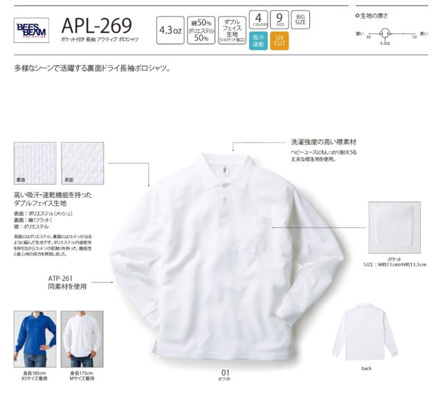 APL-269 ポケット付き 長袖 アクティブ ポロシャツ