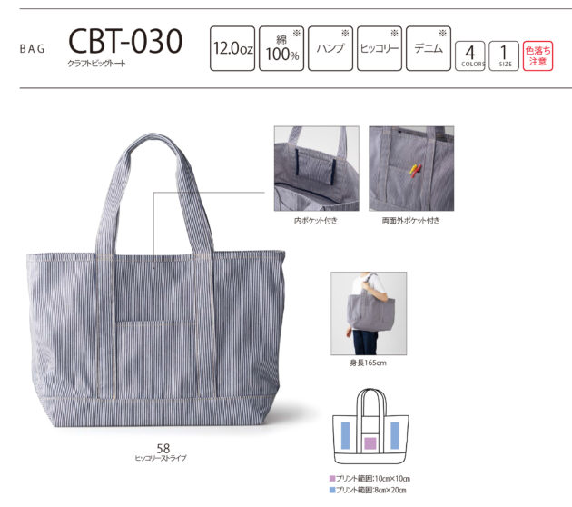 内ポケット、両面外ポケット付き。 ◎この製品に関しては、濡れた状態で衣類等と激しく擦られると移染する場合がございます。お取り扱いにはご注意ください。 ◎この製品は素材の特性上、色合いに多少の誤差がある場合がございます。 CBT-030 クラフトビッグトート 新色2カラーが追加になります。 ・24 ブ…