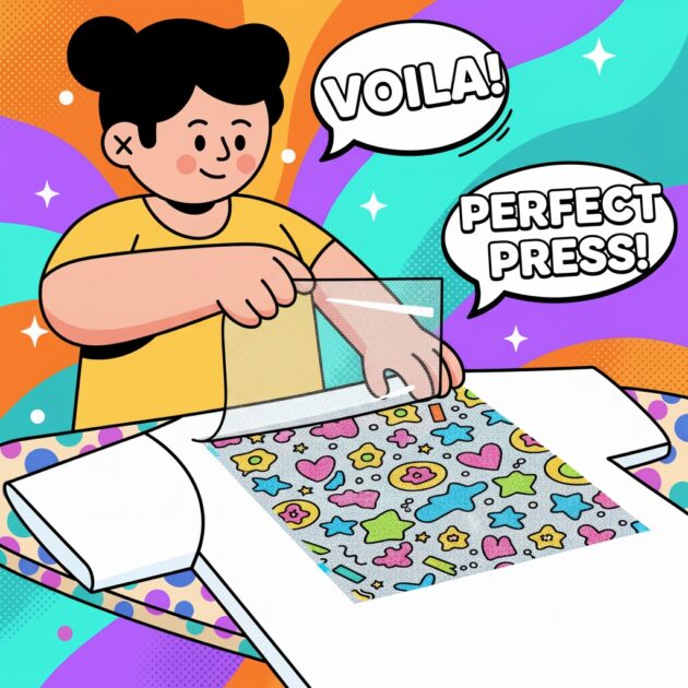 - DTF フィルムを慎重にはがします。インクが残る場合は、その部分を再度プレスしてください。