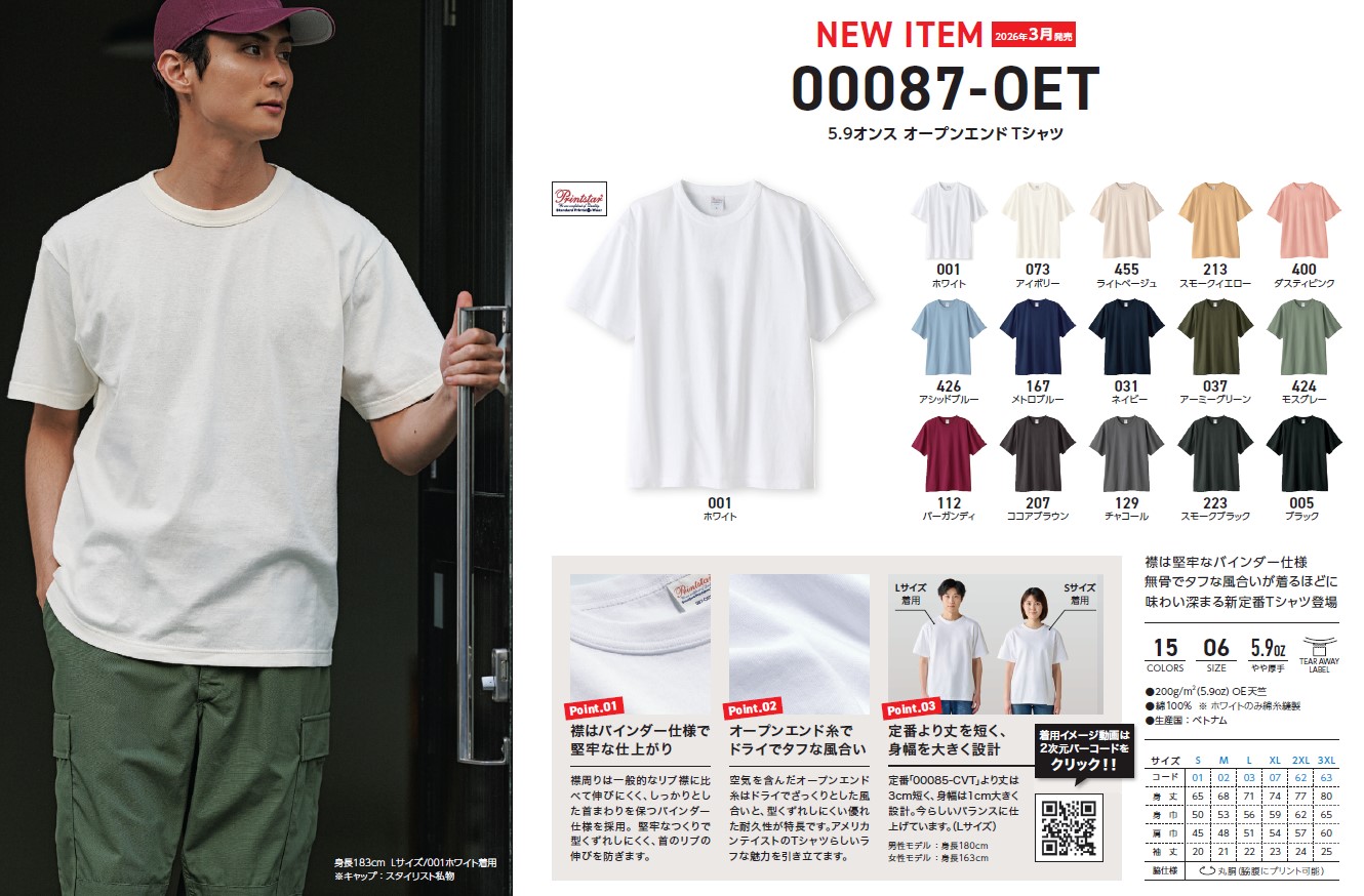 00087-OET 5.9オンス オープンエンドTシャツ