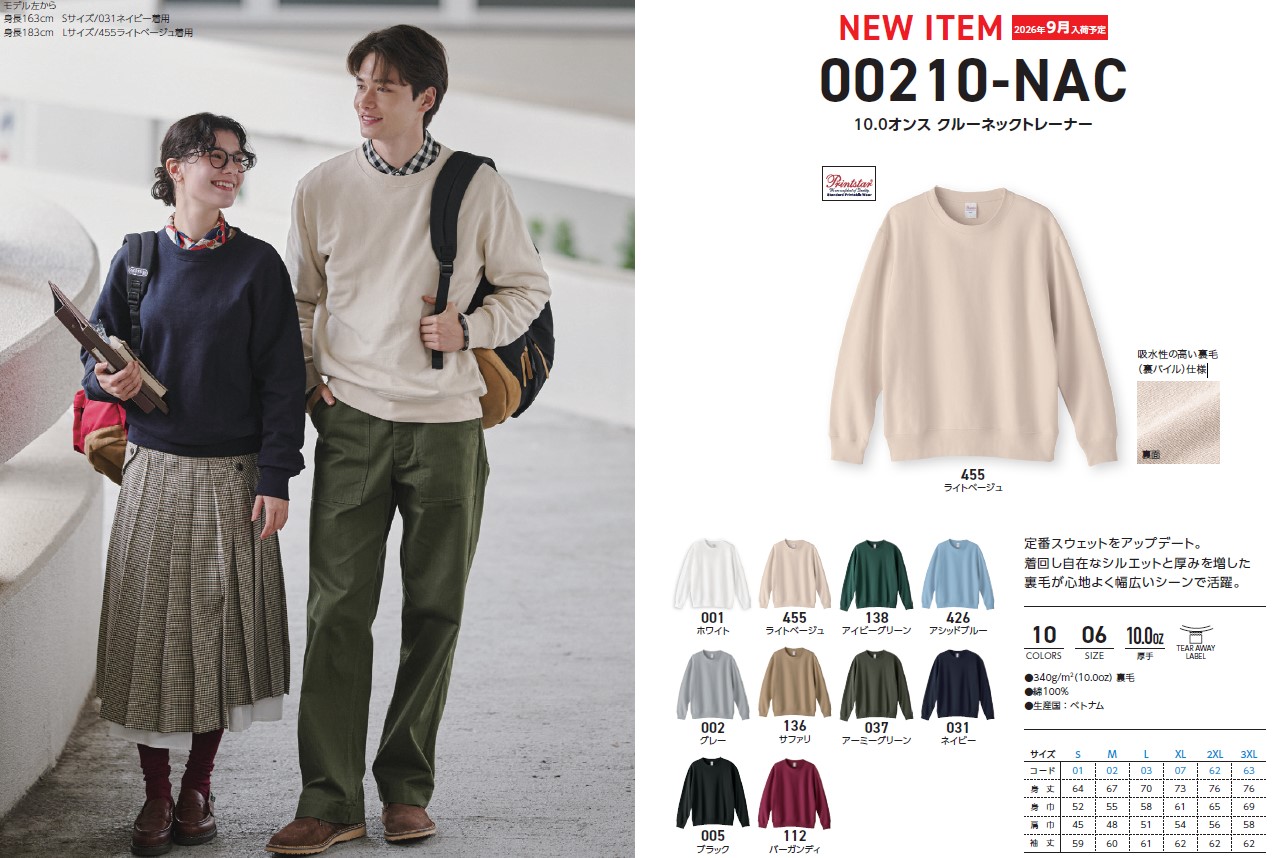 予約入荷予定00210-NAC10.0オンスクルーネックトレーナー