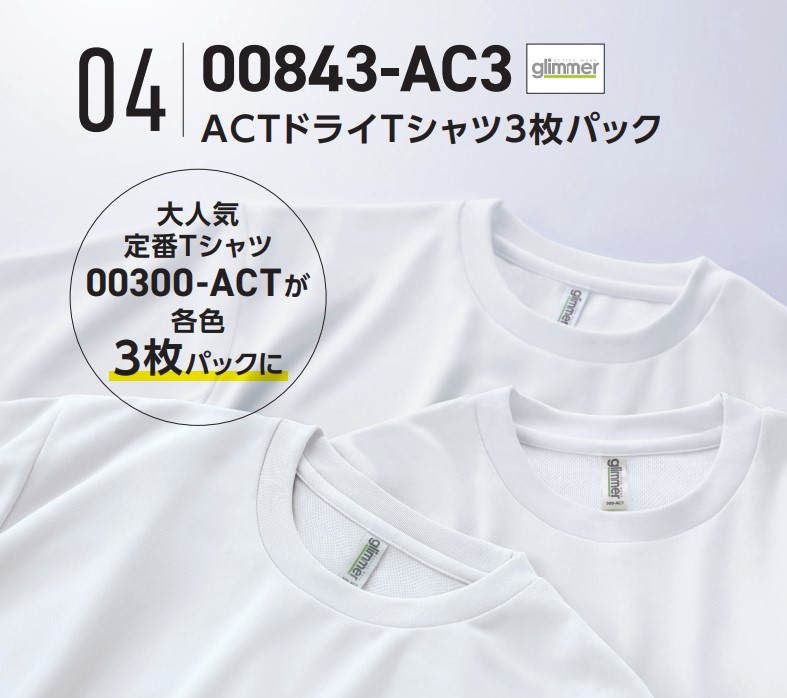 大人気定番ドライTシャツが00300-ACT各色3枚パックになりました!
