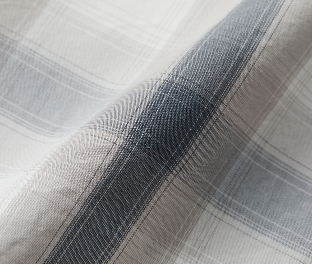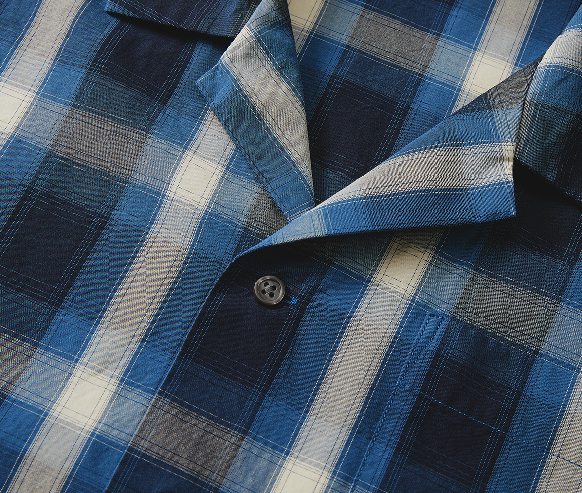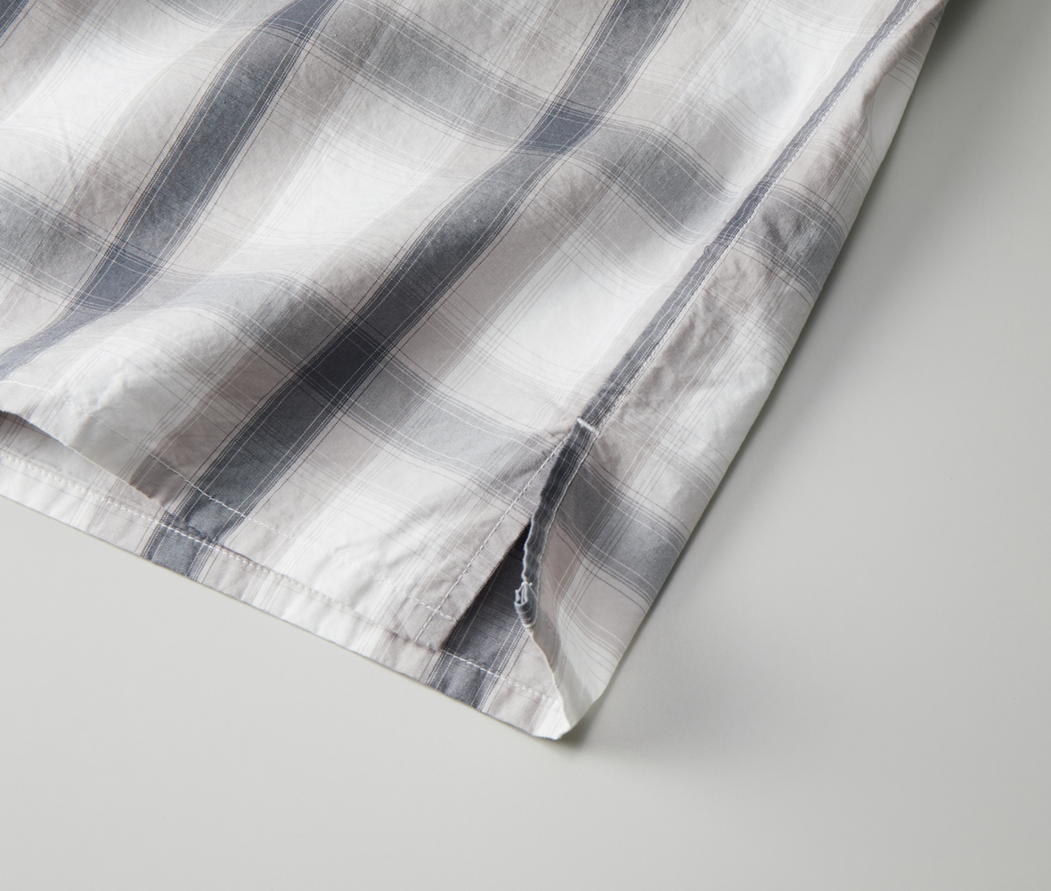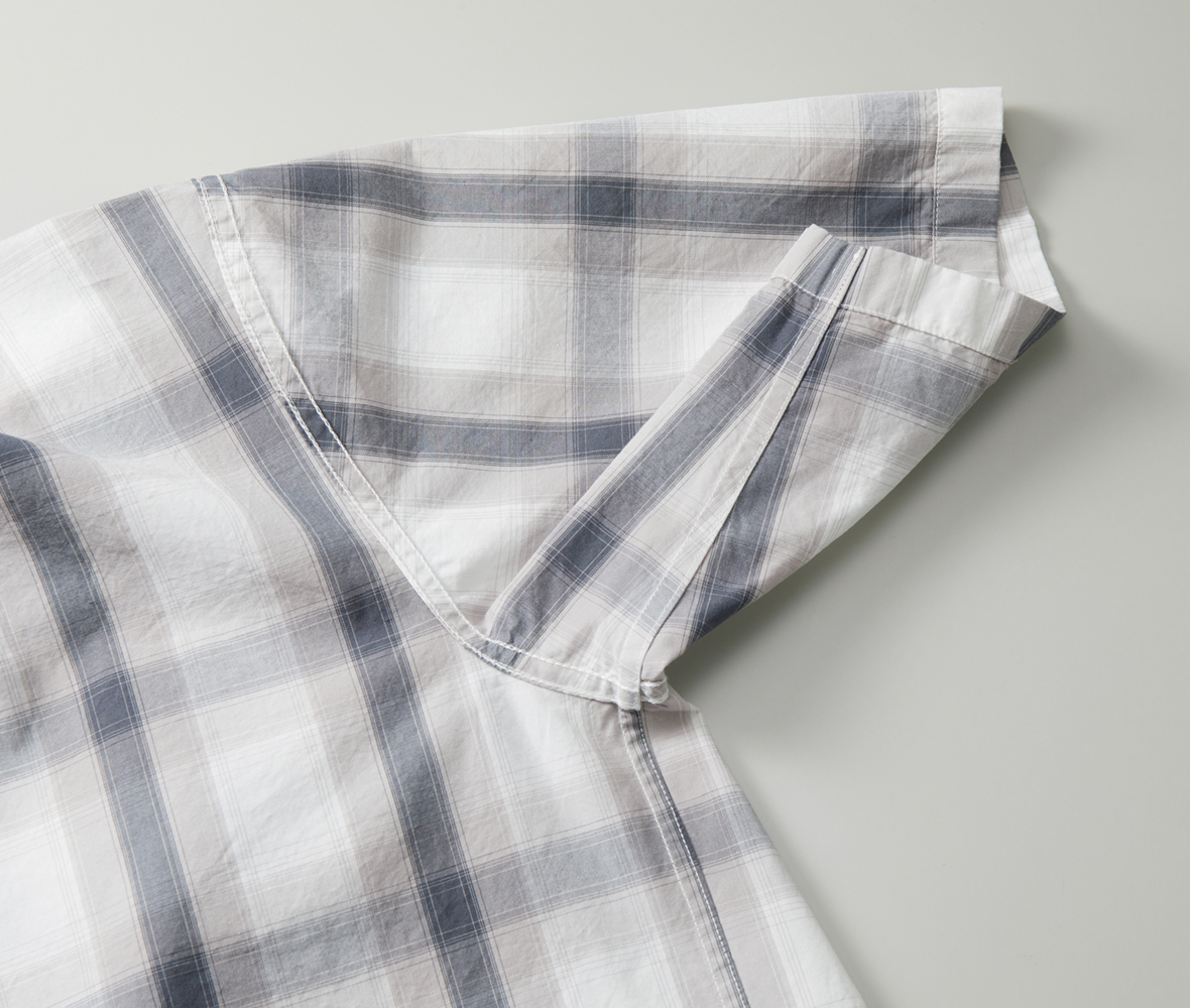 ラフで自由な雰囲気をまとったコットンシャツ。トーン・オン・トーンのチェック柄が、スケーターやグランジなどアメリカンカルチャーのエッセンスを感じさせる一枚です。製品洗いを施すことで生地のハリ感をほどよく抑え、やわらかな風合いに仕上げました。開放感のあるオープンカラーが、自然な抜け感を演出。さらに、アクセントになる左胸のポケットや、シェル調の上品なボタンなど、ディテールにもこだわりが詰まっています。袖口から裾にかけては折り伏せ縫い、アームホールにはダブルチェーンステッチを施すなど、耐久性を高める工夫も。長く愛用できるアイテムです。