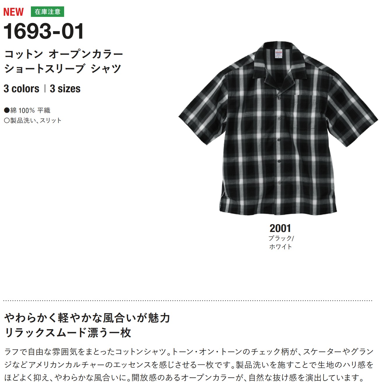1693-01 コットン オープンカラー ショートスリーブシャツ