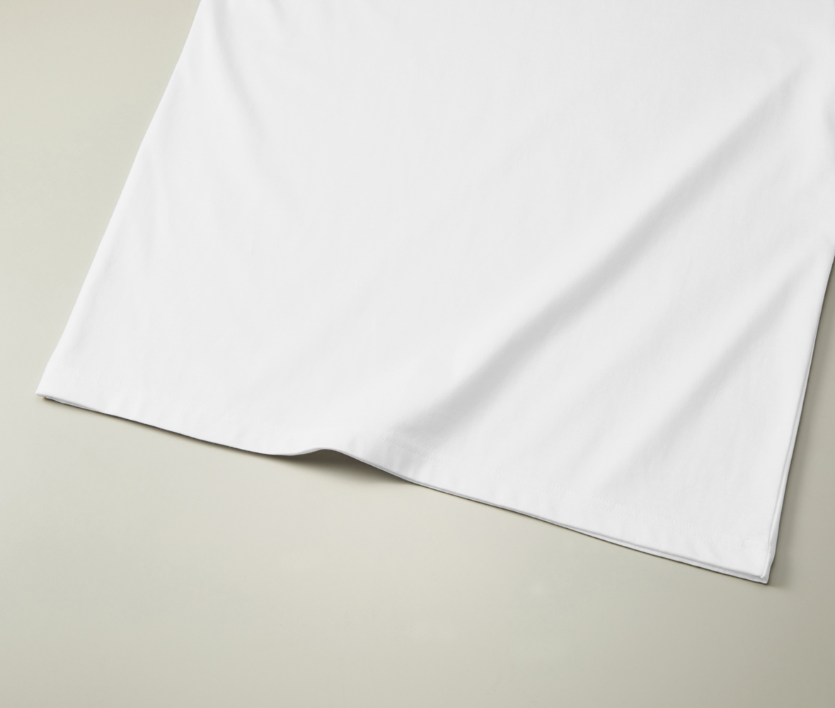 肌に触れた瞬間、ひんやりとした冷たさを感じられる接触冷感Tシャツ。綿とナイロンの交編によるダブルフェイス地を採用しており、ナイロンが持つ冷感と特殊な加工によって実現した“ひんやり感”は、一度着ればやみつきに。街着として日常的に着ることができるよう、表糸に綿糸を使用することでナイロン特有の光沢感をおさえ、綿100%Tシャツのようなナチュラルな風合いに仕上げています。裏地はメッシュ構造で肌離れが良く、汗を吸収し拡散する“吸水速乾性”も持ち合わせたすぐれもの。もちろんプリント加工も可能なので、機能的で特別なアイテムを制作したい方にぴったりです。これ一着あれば、猛暑をさらりと乗り切れること間違いなし。
