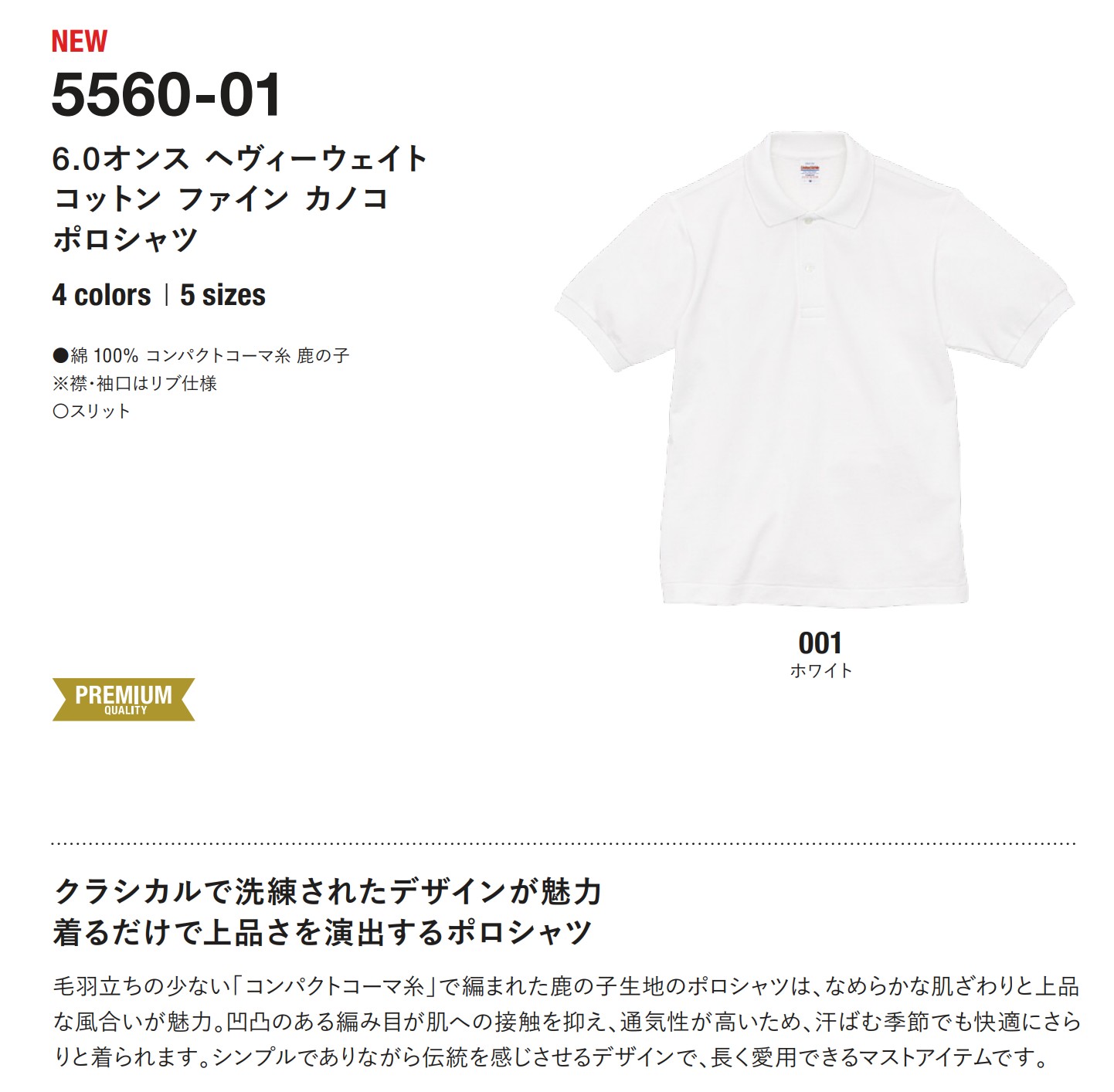 5560-01 6.0オンス ヘヴィーウェイト コットン ファイン カノコ ポロシャツ