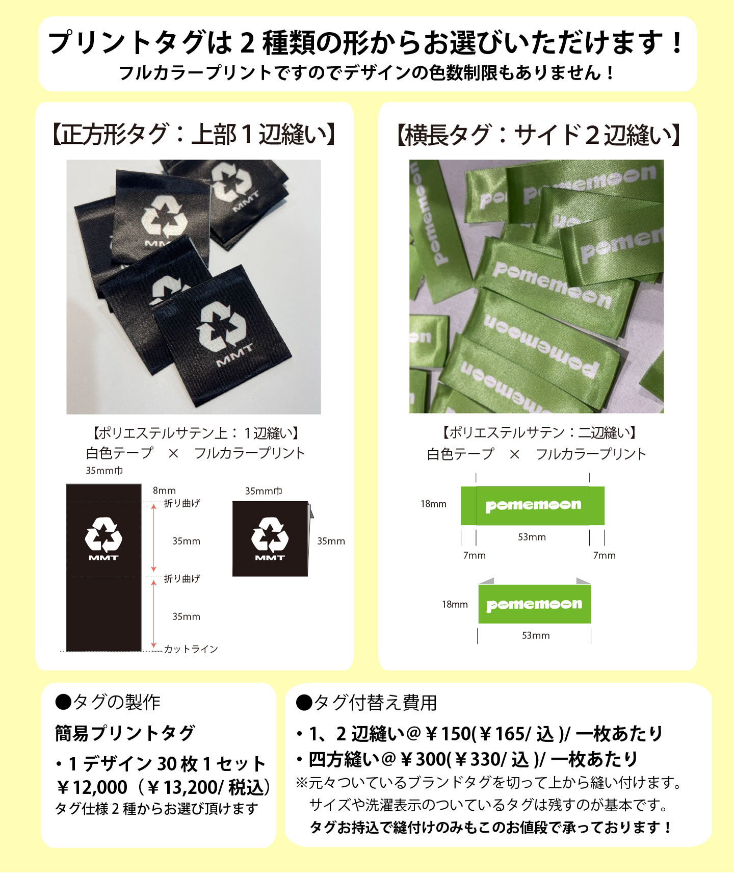 タグ縫い付け加工費(1枚1工程あたり)