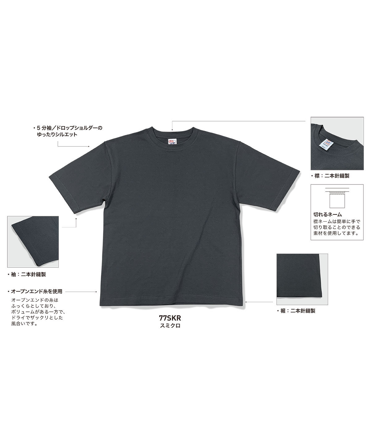 OE糸を使用したオーバーサイズシルエットの5分袖Tシャツ。ドロップショルダーでリラックス感を演出。