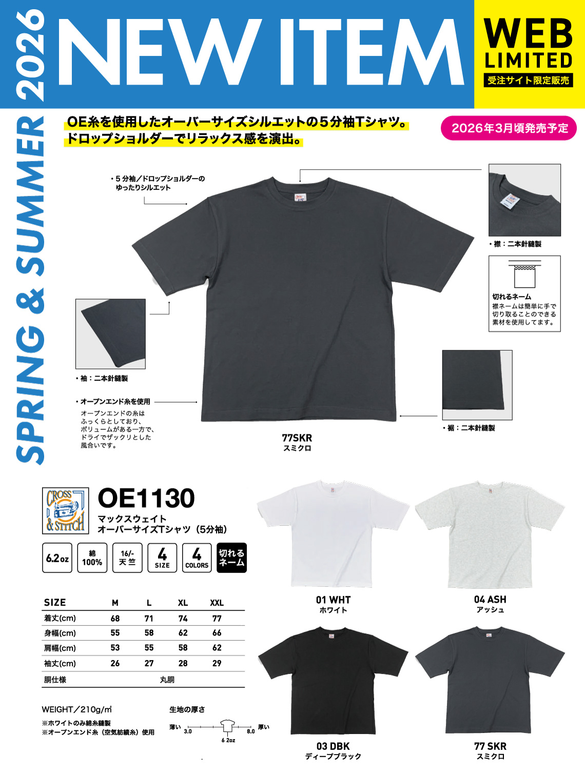 OE1130マックスウェイトオーバーサイズTシャツ(5分袖)
