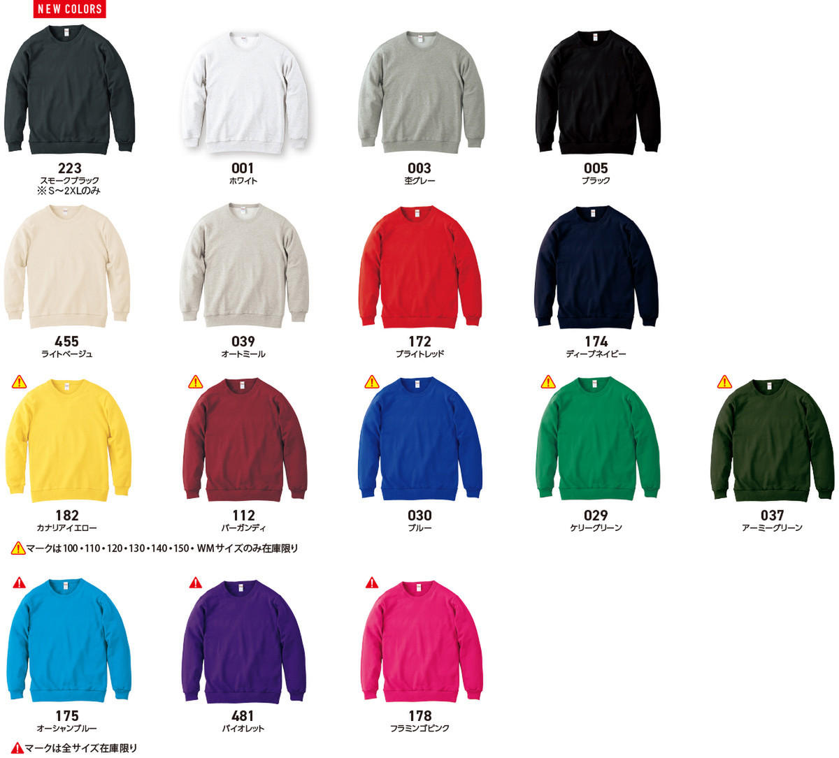 ライトウェイトの裏パイルスウェット キッズからビッグサイズまでビビッドなカラーが豊富