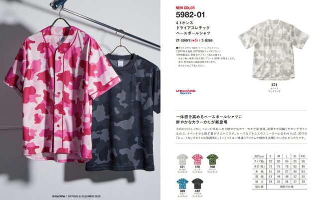 一体感を高めるベースボールシャツに鮮やかなカラーカモが新登場