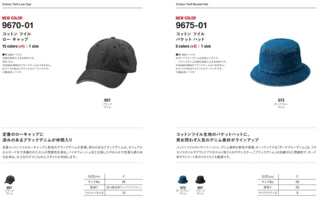 コットンツイル生地のバケットハットに、男女問わず人気のデニム素材がラインアップ