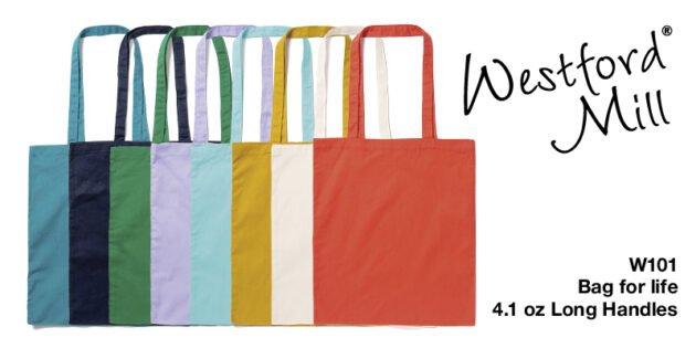 Westford Mill(ウエストフォード ミル)は、イギリスのショッピングバッグ、手提げバッグ、バックパックなど、幅広いラインナップをエシカルの視点から製造しているブランドです。WM101 Bag for lifeは、爆発的なヒット商品となっています。カラーは現在48色もあり、ブランド様や企業様のイメージがきっと見つかります。コットン素材のトートバッグ以外にも、ジュート素材やポリエステルとコットンをブレンドしたリサイクル生地を使用し、環境に配慮した製品を生み出しています。